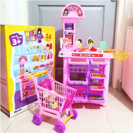 PROMO MAINAN ANAK EDUKASI KERANJANG TROLLY BELANJA SUPERMARKET MEGAMART SATU SET TERMURAH 140 MESIN KASIR MAINAN